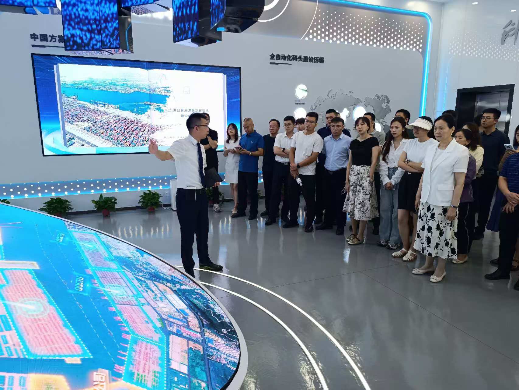 “發(fā)展新質生產(chǎn)力,建設世界一流海洋港口”。第四站,聯(lián)絡員一行來到全球領先、亞洲首個全自動化集裝箱碼頭和首個“氫+5G”智慧綠色碼頭-山東省港口集團青島港全自動化集裝箱碼頭,這也是全國首個全國產(chǎn)全自主自動化碼頭。該碼頭實現(xiàn)了當年投產(chǎn),當年盈利,作業(yè)效率較傳統(tǒng)碼頭提升30%,節(jié)省人力80%,10次打破自己保持的自動化碼頭裝卸效率世界紀錄。聯(lián)絡員們了解了青島新前灣集裝箱碼頭有限責任公司關于智慧港口建設實踐和綠色港口建設情況。山東省港口以科技創(chuàng)新賦能產(chǎn)業(yè)創(chuàng)新、以改革探尋轉型發(fā)展最優(yōu)解的高質量發(fā)展新路徑給聯(lián)絡員們帶來深刻啟示。
